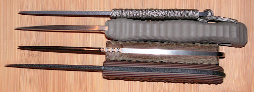 The handle has some hotspots on the pommel end of the micarta, and the ridges are milled with very sharp edges and could benefit from 5 minutes with a bit of sand paper. Compare to the AD and MPLE, which both have excellent handle ergonomics.